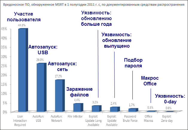 Microsoft приводит подробные данные о методах распространения 27 семейств вредоносных программ, наиболее часто встречавшихся в первой половине 2011 года.