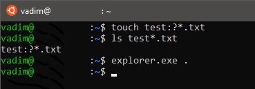 Любопытно, что WSL не создает недопустимые имена в файловой системе Windows, хотя в консоли Linux показывает символы правильно.